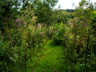 We are blessed with a beautiful piece of land that offers three different habitats to rest in nature: Creekside, the Southeastern Meadow, and Woodlands. We also have a special area set aside for pets. Land restoration is part of our conservation efforts and we are continually giving each of these habitats special attention in order to thrive.